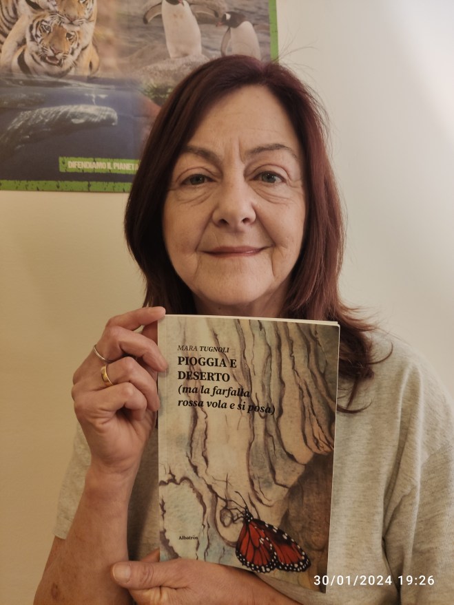Nel vasto panorama della letteratura, alcuni autori si distinguono per la capacità di tessere metafore avvincenti e riflessioni profonde. Mara Tugnoli è sicuramente una di queste voci, e il suo libro di poesie, “Pioggia e deserto (ma la farfalla rossa vola e si posa)”, non fa eccezione. Oggi abbiamo il piacere di approfondire la sua visione artistica, esplorando il legame tra pioggia e deserto, passato e futuro, attraverso le parole dell’autrice. Diamo il benvenuto a Mara Tugnoli!